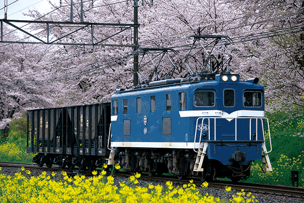 秩父鉄道の電気機関車は、セメントの原料になる石灰石を積む貨車をけん引して輸送する貨物列車や、臨時列車として客車をけん引など、様々な場面で活躍しています。